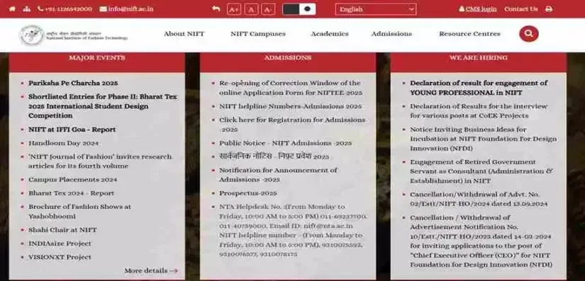Candidates are advised to visit the official website of the National Institute of Fashion Technology (NIFT) for more information.