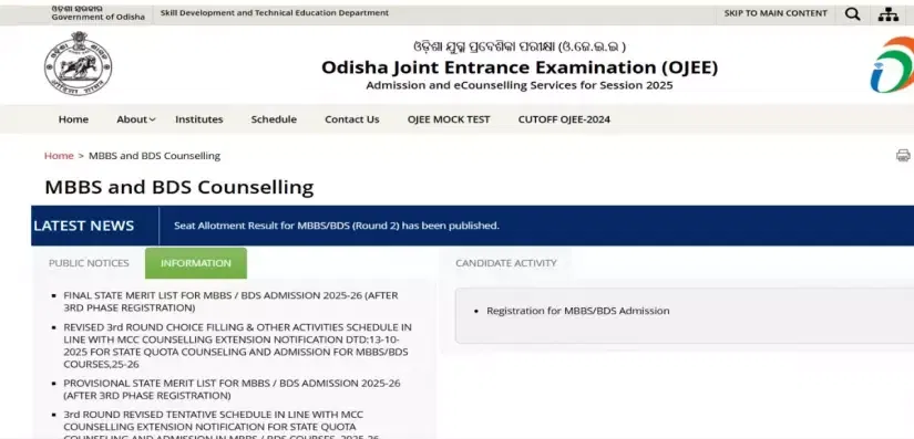 Odisha NEET UG Round 3 Choice Filling 2025: The Odisha Joint Entrance Examination cell is presently conducting the choice filling process for Round 3 NEET UG. As per the latest updates, the authority has extended the last date of choice filling. Candidates can fill out the course and college choice till October 23, 2025. OJEE has activated a direct link to choice filling on their website. Only registered candidates will be allowed to enter choices for seat allocation.