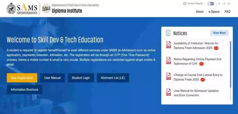 Odisha Polytechnic Admission 2025 Registration: The Department of Skill Dev & Tech Education, Odisha, has scheduled to conclude the registration process for the Odisha Polytechnic Admission 2025 today, June 23, 2025. Interested and eligible candidates can apply for the Odisha Polytechnic 1st Semester Year Admission 2025 at the official website- skill.samsodisha.gov.in. Candidates can register and fill out the Common Application Form (CAF) online on the SAMS portal. Candidates can find out the direct link to apply for the Odisha Polytechnic Admission 2025 Registration available here.