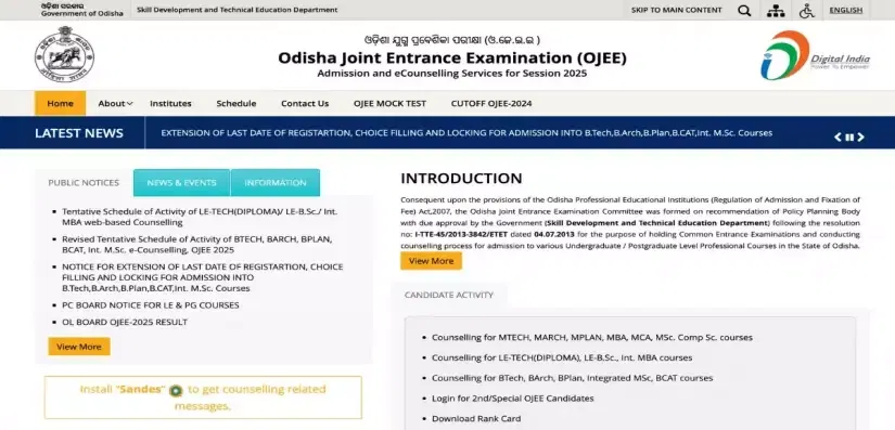 OJEE Choice Filling Last Date 2025: The Odisha Joint Entrance Examination (OJEE 2024) online choice filling period will end on July 5, 2025, according to the Government of Odisha's Department of Skill Development and Technical Education. Until 11:59 PM on the deadline, aspirants can submit their OJEE choice-filling forms for 2025 at ojee.nic.in. Admission to a number of graduation and postgraduate programs in the fields of engineering, management, science, finance, and pharmaceuticals at Odisha's state government colleges and universities is determined by the results of this exam. Admission will be granted to the chosen applicants in the forthcoming 2025–2026 academic year. Visit here to see the application form's key information.