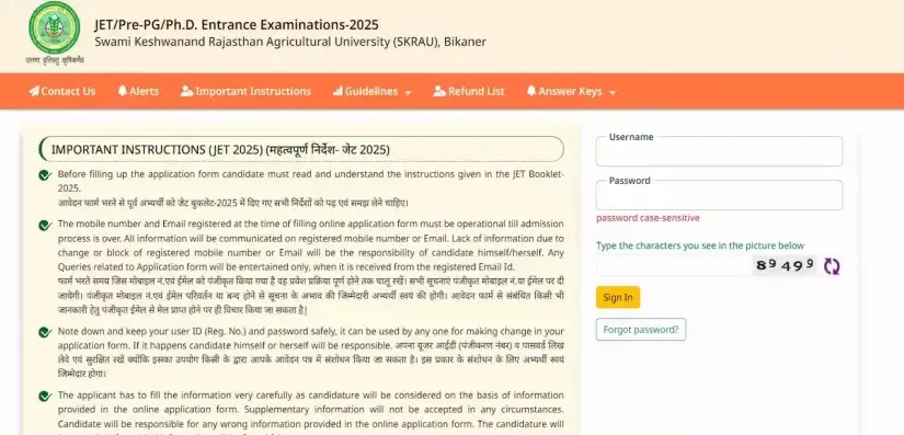 Swami Keshwanand Rajasthan Agricultural University (SKRAU), Bikaner, will release the scorecard for the Rajasthan JET 2025.