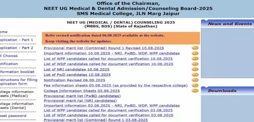 Rajasthan NEET UG Revised Merit List 2025: The Office of the Chairman, NEET UG Medical & Dental Admission/Counselling Board-2025, SMS Medical College, Jaipur, has released the revised Rajasthan NEET UG Round 1 Merit List 2025. Candidates can access the Rajasthan NEET UG Revised Merit List 2025 Download Link at the official website- rajugneet2025.com. Candidates can access the revised merit list directly. The merit list is available in PDF format, and candidates need not log in to download the Rajasthan NEET Revised Merit List 2025. Access the PDF download link available here.