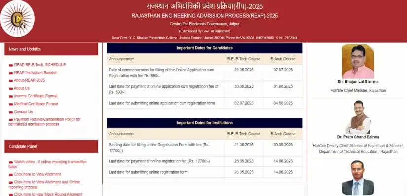 REAP B.Tech TWFS Category Seat Allotment 2025 Expected Release Time: The Technical Education Department, Rajasthan, has scheduled to release the REAP 2025 B.Tech TWFS (Tuition Fee Waiver Scheme) Category Seat Allotment Result today, July 14, 2025. The REAP B.Tech TWFS Category Seat Allotment 2025 will be released online at the official website- reap2025.com. Once the REAP B.Tech TWFS Category Seat Allotment is released, all the selected candidates must complete the online reporting process by July 16, 2025. Interested candidates can check the REAP B.Tech TWFS Category Seat Allotment 2025 Expected Release Time available here for their reference.