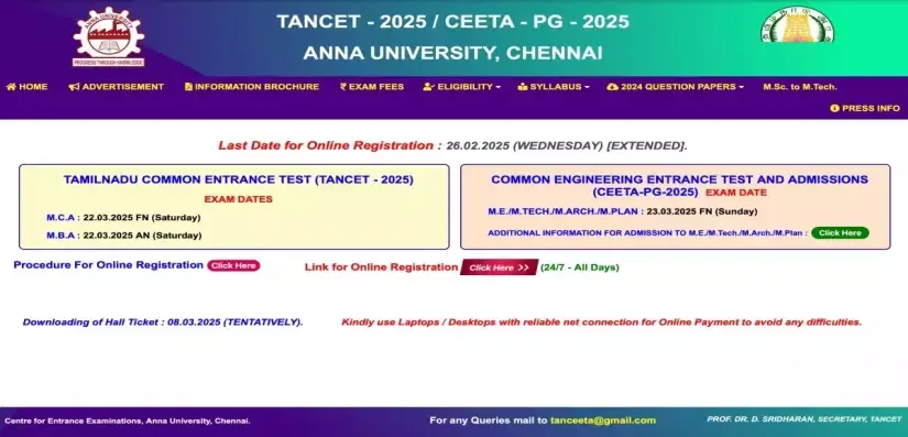 Candidates can complete the TANCET 2025 Registration through the link below.