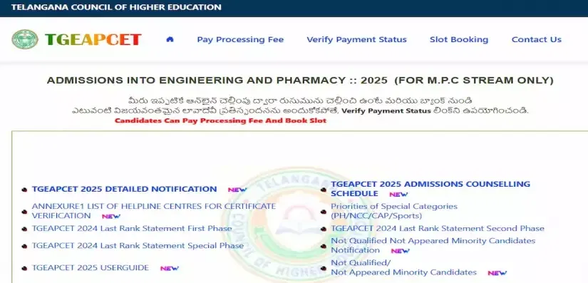 Candidates who complete the TG EAPCET Certificate Verification 2025 process can exercise their options from July 6 to 10, 2025. Considering all the options filled, the official authority will release the TS EAPCET Round 1 Provisional Seat Allotment 2025 result on July 18, 2025. Candidates are advised to visit the official website of the Telangana Council of Higher Education (TCHE) for more information.
