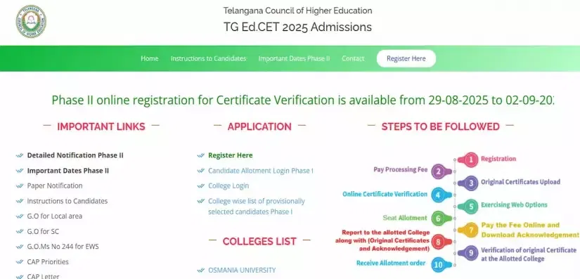 TG EDCET Phase 2 Registration 2025: Important Dates