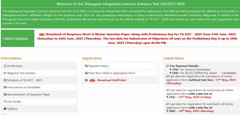 Candidates are further advised to visit the official website of the Telangana State Integrated Common Entrance Test (TG ICET) for more updates.