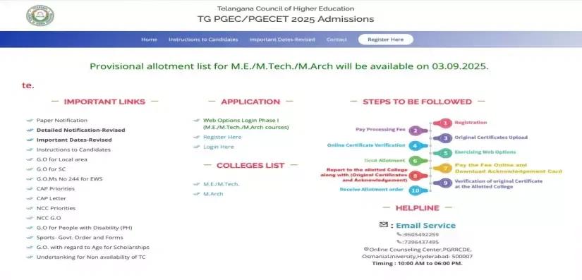 Here is the official last date for TG PGECET Phase 2 Web Option Editing.