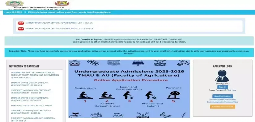 After the TNAU Rank List 2025 is released on the official portal, eligible candidates will receive a notification on their email and registered phone numbers. Through the notification, candidates will be invited to take part in the counselling round for admission purposes.