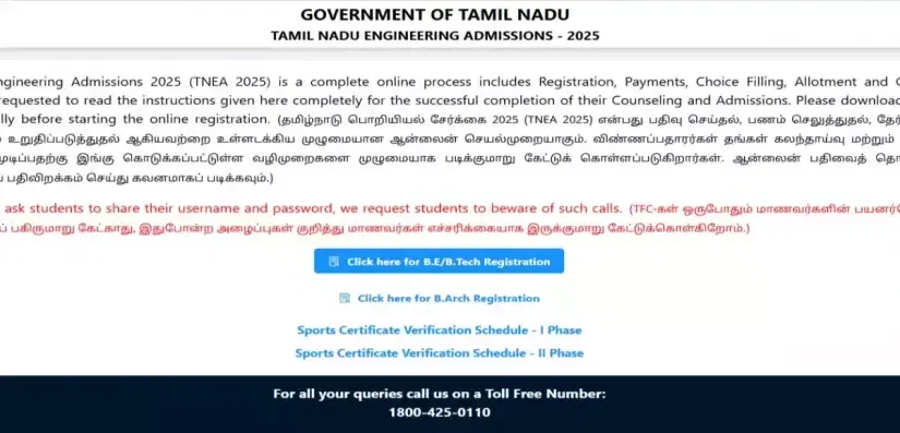 Candidates meeting the eligibility criteria can click on TNEA registration link 2025 from the table below to begin completing the application process.