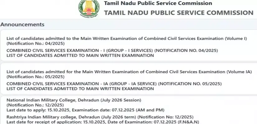 The commission will consider candidates for the TNPSC 2025 Main exam after scrutinizing the documents submitted by them and verifying the claims made concerning age, qualification, and category. Per the schedule, the Main exam will be held at the Chennai centre from December 1 to 4, 2025. Candidates are advised to visit the official website for more details.