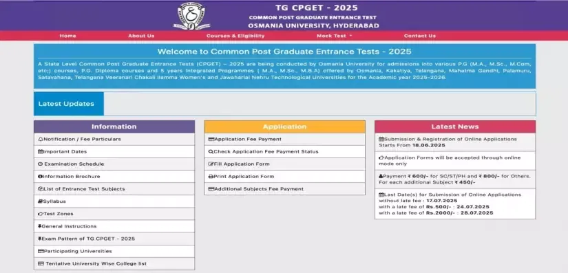 TS CPGET 2025 Registration: The Osmani University, Hyderabad, has commenced registration for the Common Post-Graduate Entrance Test (CPGET) 2025. Eligible candidates who are interested in taking admission to several PG, PG Diploma, and integrated courses at Osmania University and other participating institutes can complete the TS CPGET 2025 Registration and Application submission. The TS CPGET 2025 Registration Link is an active and official website - cpget.tgche.ac.in.
