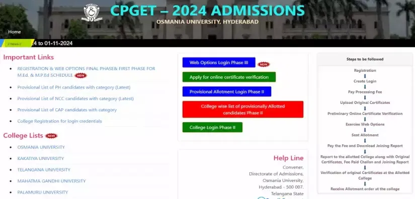 Candidates must note that the last date for the TS CPGET Final Phase Reporting 2024 is November 12, 2024.