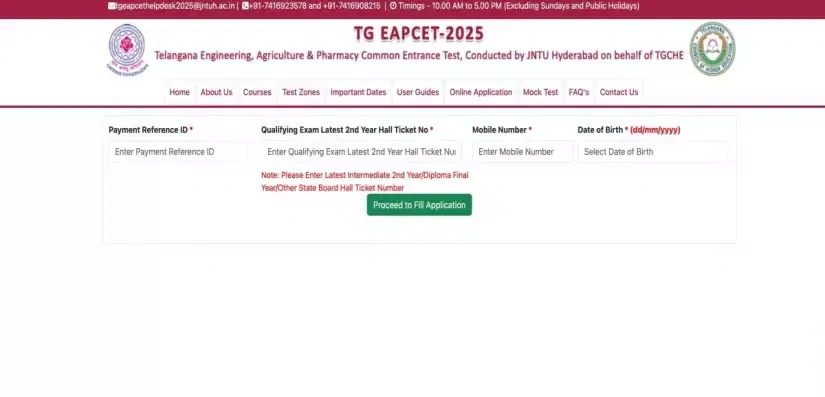 - Click on the direct link to complete the TS EAMCET Application 2025.