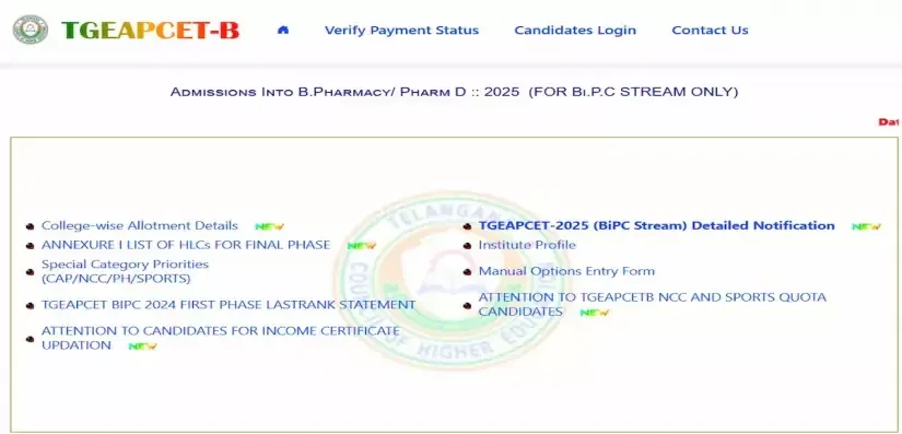 - Those who registered in Phase 1 do not need to register again for TS EAMCET BiPC Phase 2 Counselling 2025.