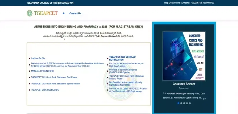 Candidates can access the TS EAMCET Internal Sliding Provisional Seat Allotment Result 2025 through the link below: