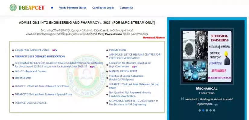Candidates can check the college-wise allotment for the first phase of counselling under TS EAMCET 2025: