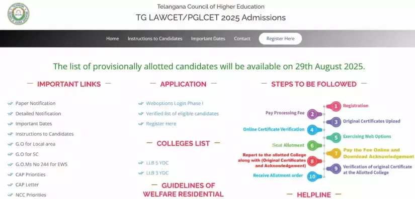 - Go to the official TS LAWCET admissions portal at lawcetadm.tgche.ac.in.