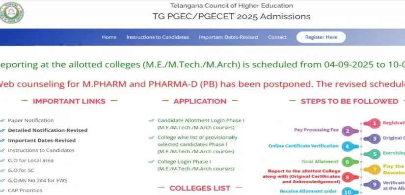 Candidates awaiting the release of the TS PGECET seat allotment 2025 for phase 1 can check the important dates for seat acceptance and reporting here: