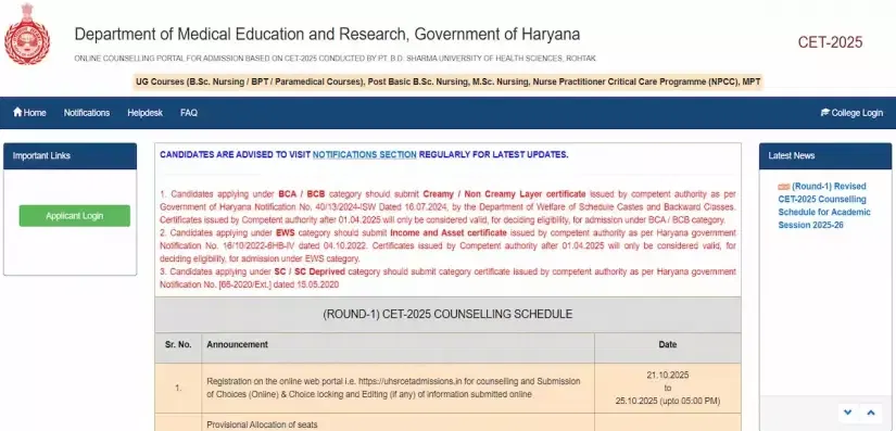 UHSR CET Round 1 Seat Allotment 2025 Releasing Today on 26 October