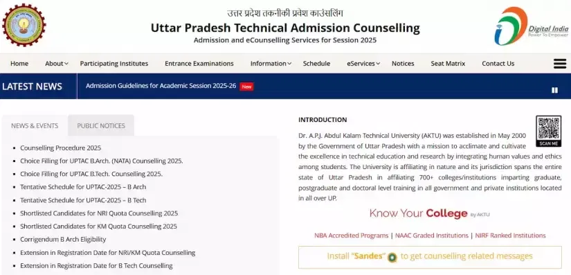 Dr. A.P.J. Abdul Kalam Technical University (AKTU) will conduct five regular rounds of UPTAC Counselling 2025 along with two special rounds of counselling. The UPTAC Round 2 Counselling 2025 will commence from August 2, 2025, and the seat allotment will be released on August 5, 2025. Visit the official website of the Uttar Pradesh Technical Admission Counselling (UPTAC) for more information on the UPTAC Counselling 2025 and more.