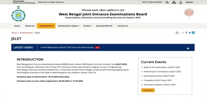 WB JELET Admit Card 2025 Expected Release Time: The West Bengal Joint Entrance Examinations Board (WBJEE) is the conducting authority for the Joint Entrance Lateral Engineering Test (JELET) 2025. As scheduled, the exam authorities will release the JELET Admit Card 2025 on October 10, 2025. The WB JELET Admit Card 2025 Expected Release Time is between 11:00 AM and 2:00 PM.