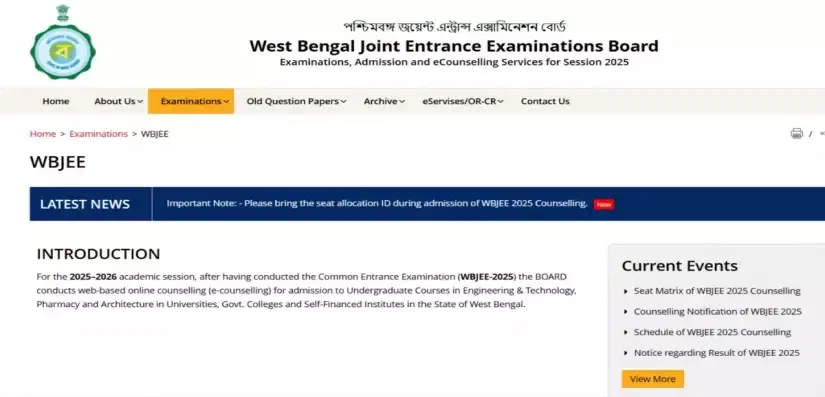 - Search for the WBJEE seat allotment result under the Current Events section.
