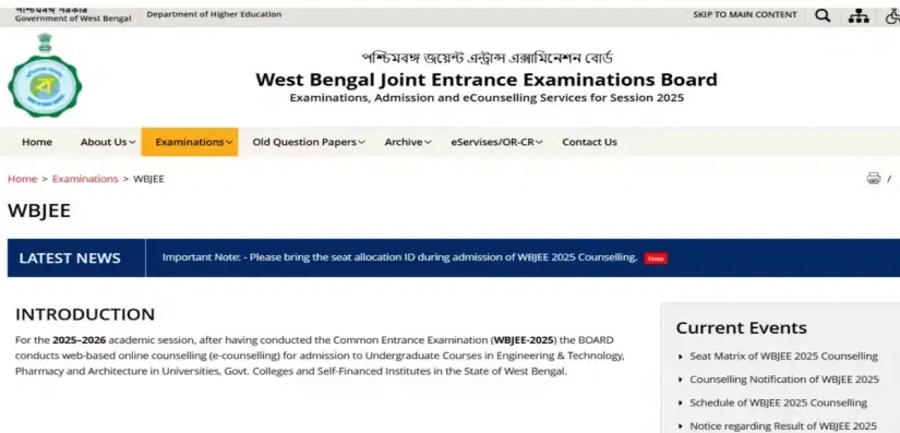 WBJEE Round 1 Seat Allotment Link 2025: The West Bengal Joint Entrance Examination Board has released the seat allotment result for Round 1 counselling on its website today, September 3, 2025. Eligible candidates can provide their roll number and password to check the status of their seat. If a seat is allotted based on the first preferences, the candidates are requested to pay the seat confirmation fee and report to the allotted college with the required documents. Seat allocation has been done considering the merit in the entrance, seat availability, choices filled, and admission policy. Those not satisfied with the allotment can opt for betterment and participate in the next round. Find the direct link to download the WBJEE Round 1 seat allotment 2025 and check essential instructions here.